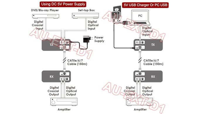 Amazon Com Digital Optical Spdif Audio Extender Over Cat5 Cat6